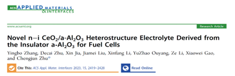Besides, the research team of Prof. Zhu Chengjun has also made important progress in the research of semiconductor heterostructure for the low temperature solid oxide fuel cells. The research result concerned has been published in the international top journal in engineering materials science-ACS Appl. Mater. Interfaces. The article is titled as “Novel n−i CeO2/a-Al2O3 Heterostructure Electrolyte Derived from the Insulator a‑Al2O3 for Fuel Cells”(URL of the article: http://pubs-acs-org-s.vpn.m.jnhyzs.com:8118/doi/epdf/10.1021/acsami.2c18240)