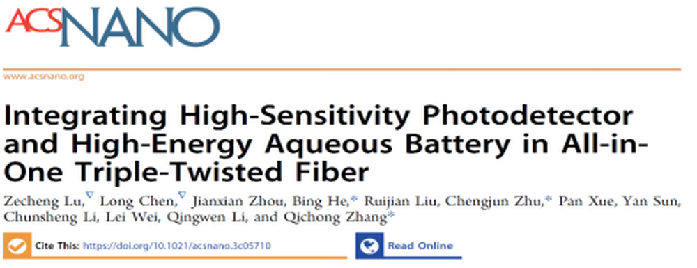 Recently, the research team of Prof. Zhu Chengjun with the School of Physical Science and Technology has made important progress in the research of fiber-shaped integrated devices. Its research result concerned which is titled “Integrating High-Sensitivity Photodetector and High-Energy Aqueous Battery in All-in-One Triple-Twisted Fiber”, has been published in the international top journal of nano-ACS Nano. (URL of the article: https://pubs. acs. org/doi/full/10. 1021/acsnano 91香蕉. 3c05710).