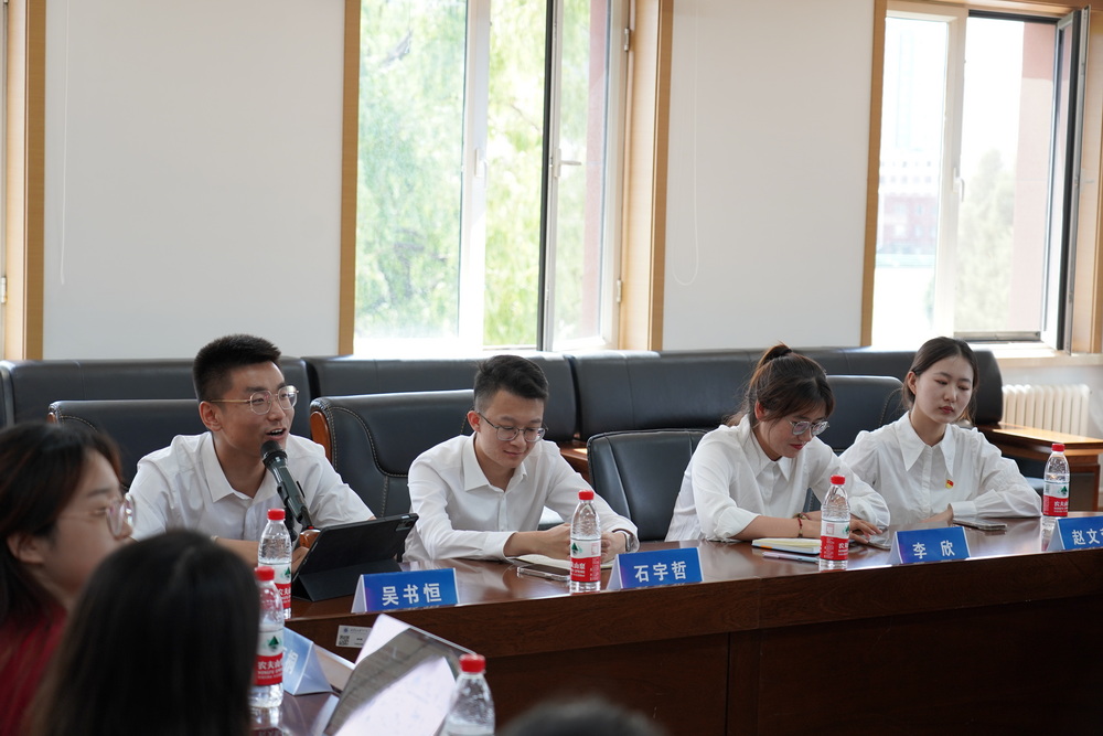 为扎实推进学习贯彻习近平新时代中国特色社会主义思想主题教育,强化思政育人,增进校际间交流学习,7月11日下午,复旦大学“星火”党员志愿服务队与我校“旗帜·领航”学生理论轻骑兵举办了座谈交流会。复旦大学党委研究生工作部部长陈洁、副部长兼“星火”党员志愿服务队指导老师孙冰心、思政办副主任兼“星火”党员志愿服务队指导老师范佳秋,马克思主义研究院助理研究员谈思嘉以及“星火”党员志愿服务队学生代表;我校研究生院院长赵海东、副院长敖文格日乐,马克思主义91香蕉视频APP下载副教授兼宣讲团指导教师魏月,马克思主义91香蕉视频APP下载讲师兼宣讲团指导教师李辰、李冰、赵文铎以及“旗帜·领航”学生理论轻骑兵学生代表参加了会议。会议由赵海东主持。
